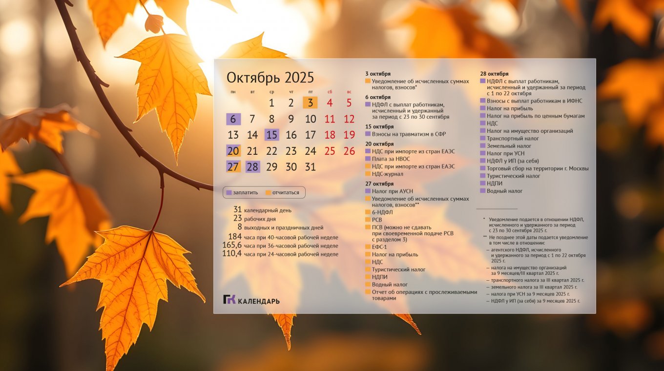 Обои на рабочий стол Бухгалтерский календарь октябрь 2025 г.